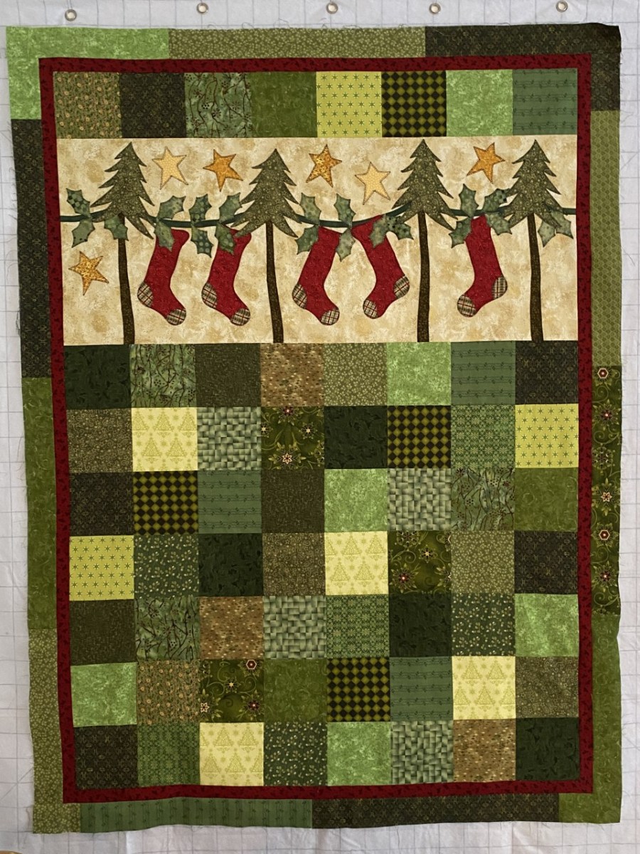 Claire – had fun working on this Christmas quilt. It is 46.5” x 58.5”, all cotton.