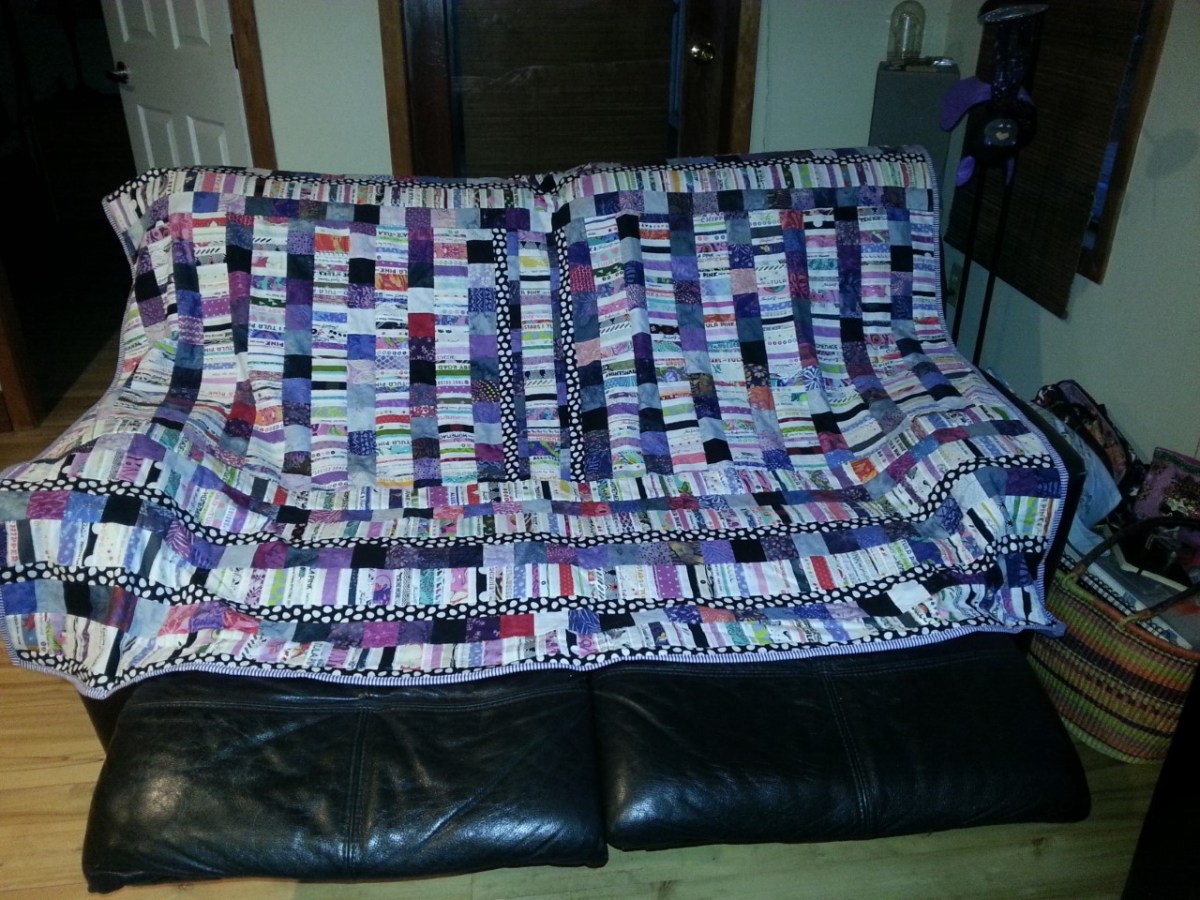 Monique – Selvages and purple batiks quilt