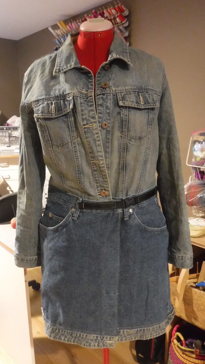 Monique – Jeans and Jacket turned into a coat. front view.